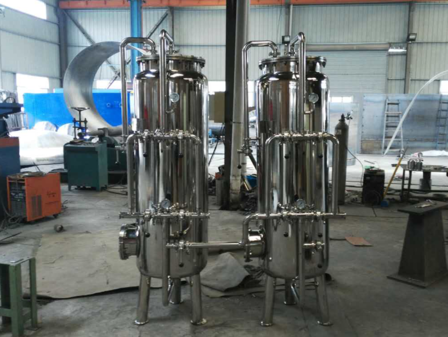 我公司为浙江我武生物生物科技股份有限公司生产制造的石英砂过滤器和活性炭过滤器,采用全不锈钢材质,直径为500mm,高度为2000mm,每台过滤器采用蝶阀阀门组控制,反洗,正洗,运行,带进出水口压力表,其中过滤器罐体为316L材质,管道为不锈钢304材质,采用外镜面抛光处理,两台过滤器串联使用,已经成功交付给客户使用。
